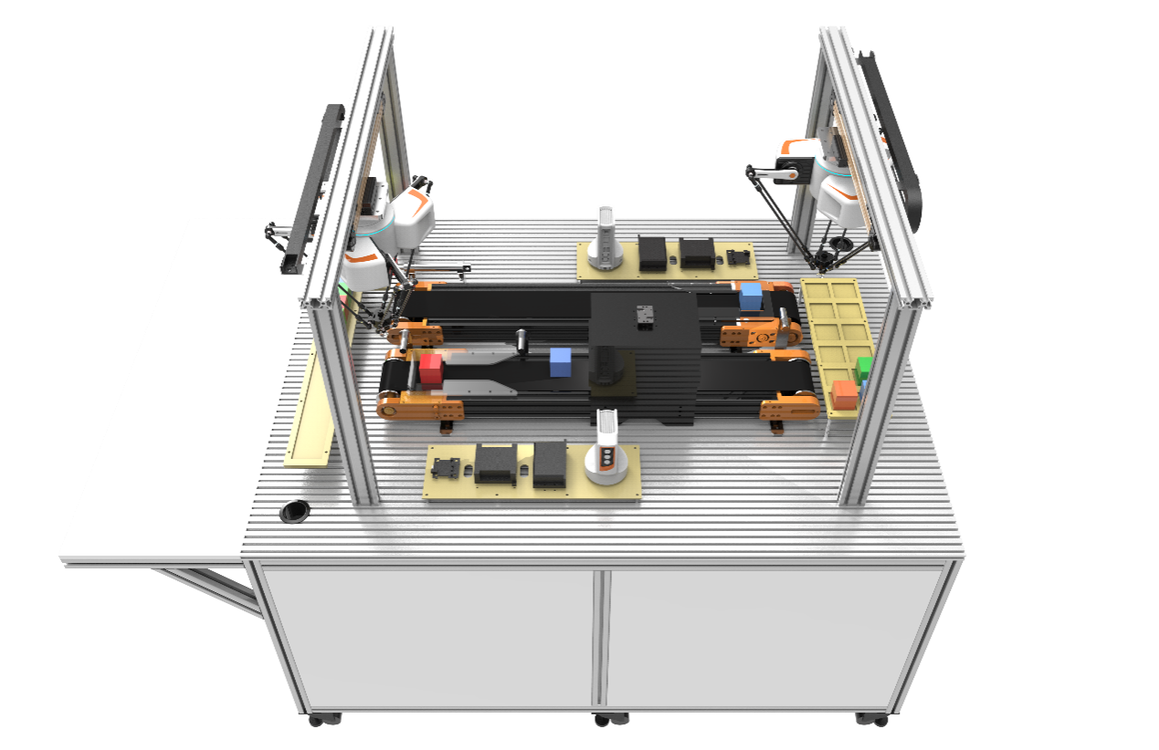 本实训平台结合了机器人分拣单元,运输模块,机器视觉模块,PLC控制系统,气动控制系统等,训练学生掌握机器人结构,机器人编程,气动控制,PLC编程,图像处理等技术,可以用于中职/高职/本科等高等院校的实训项目。