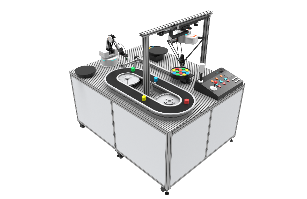 本实训平台结合了机器人分拣单元,单片机控制模块,运输模块,PLC控制系统,气动控制系统等,训练学生掌握机器人结构,机器人编程,单片机控制,气动控制,PLC编程等技术,可以用于中职/高职/本科等高等院校的实训项目。