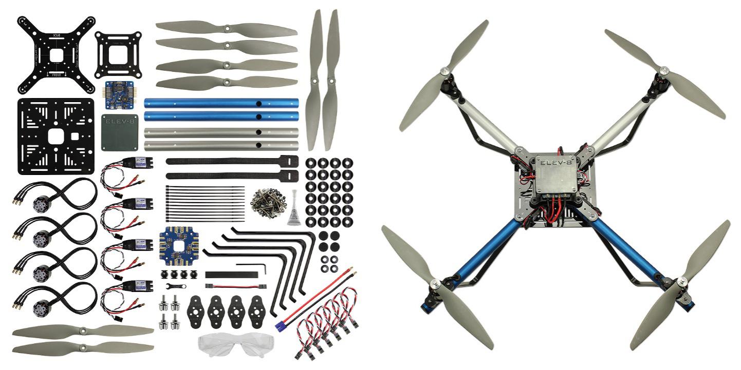 整机组装:提供了无人机完整的零部件,学生可按照组装指导说明书将零件组装成一架完整的无人机,通过组装让学生了解并熟悉无人机的硬件结构;